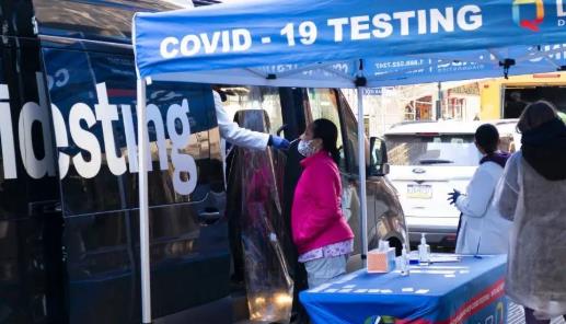 资料图:当地时间3月3日,民众在纽约曼哈顿的一个流动检测站接受核酸检测。(记者 王帆 摄)