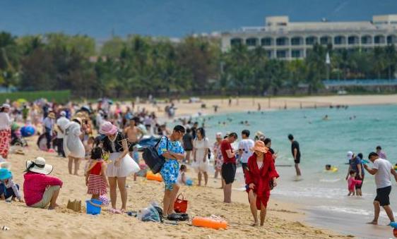 资料图。图为三亚大东海旅游景区的沙滩吸引了许多游客前来游玩。 骆云飞 摄