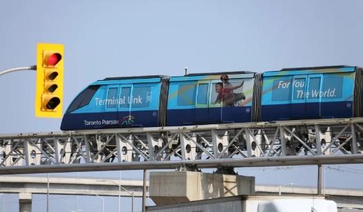 资料图:加拿大多伦多皮尔逊国际机场的轻轨列车驶离航站楼。中新社记者 余瑞冬 摄