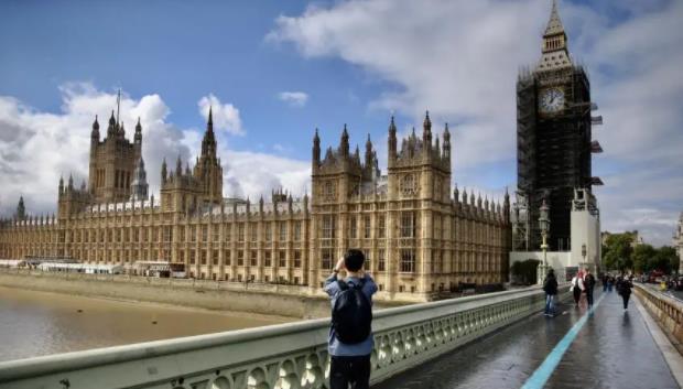 资料图:当地时间2021年9月10日,英国伦敦,著名地标大本钟的修复工作接近完成。