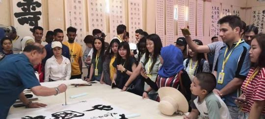 期间,来自也门、巴基斯坦、哈萨克斯坦、越南等16个国家的55名留学生走进敦煌,深度体验敦煌文化的博大精深,亲身感受中华传统文化之美。他们与国内知名学者、书法名家和非遗传承人共同交流分享中西方文化、体验中国非物质文化遗产,了解中国文化艺术精髓;还前往鸣沙山月牙泉景区,见证了大漠落日的奇幻美景;他们走进莫高窟,感受着敦煌艺术与璀璨文化的渊源。
