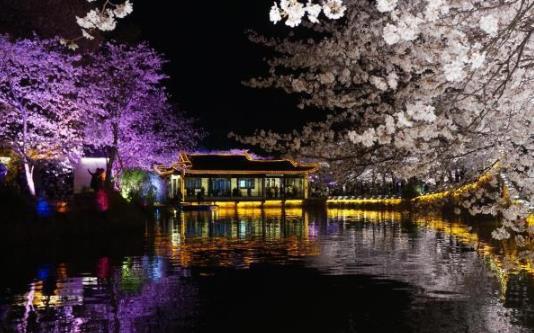 无锡太湖鼋头渚夜樱。 孙权 摄