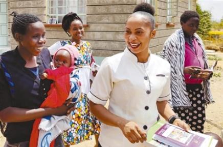 由中国能建葛洲坝集团肯尼亚斯瓦克大坝项目出资建设的卡图伦比医疗中心妇产楼为当地民众提供了更好的医疗环境。图为该中心医护人员与前来就诊的妇女在交谈。赵 阳摄