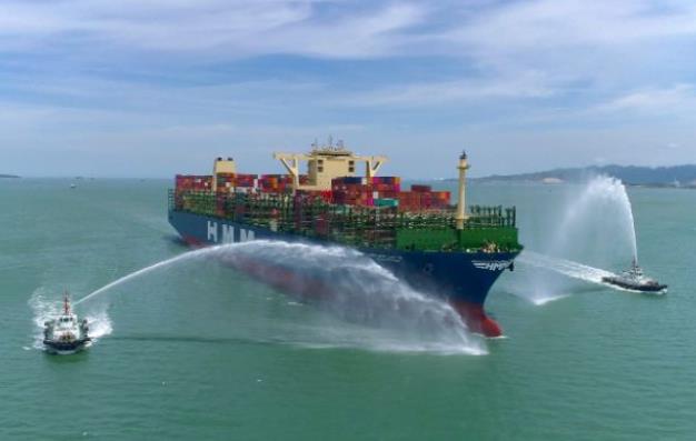 2020年7月7日,“丝路海运”命名航线船舶、世界最大集装箱船“现代格但斯克”号首航厦门港。福建丝路海运运营有限公司供图