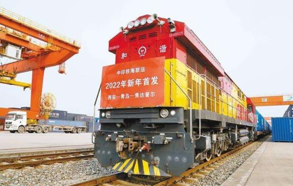 2月14日15时,2022年陕西省首趟中印铁海联运班列从西安国际港站出发,开往青岛黄岛港,班列运载的50个集装箱太阳能板和太阳能组件将从黄岛港经海运运往印度。