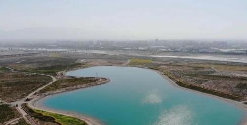 甘肃张掖戈壁滩上建成的“碧水绿洲”。杨艳敏 摄