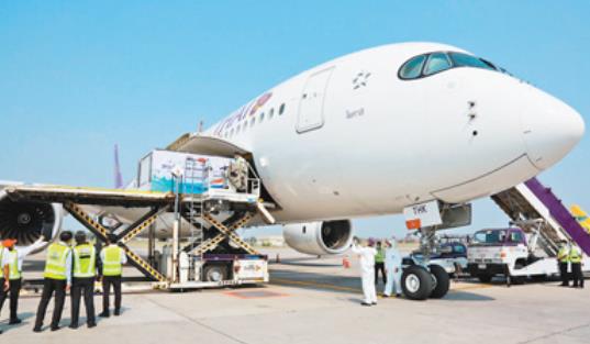 图为泰国政府采购的首批中国新冠疫苗运抵曼谷素万纳普机场。本报记者 孙广勇摄