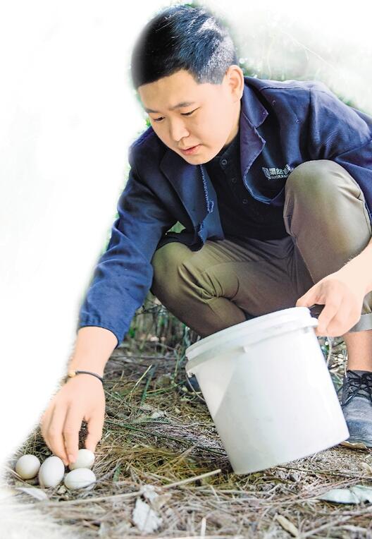 吴迪在养鸡场的草垛里收鸡蛋。通讯员 夏鹏飞 记者 王建龙 摄