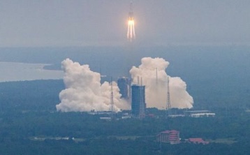 2021年4月29日11时23分,中国空间站天和核心舱在我国文昌航天发射场发射升空,准确进入预定轨道,任务取得成功。新华社记者 蒲晓旭 摄