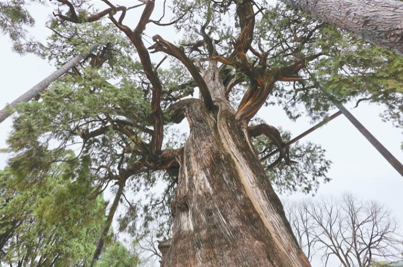 黄帝陵轩辕庙内的黄帝手植柏(4月3日摄)。 王姿颐摄