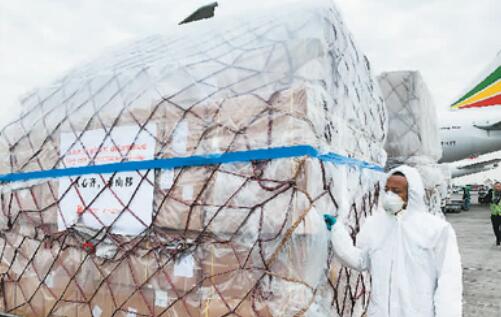 3月22日上午,满载着来自中国抗疫物资的埃航货运包机抵达埃塞俄比亚首都亚的斯亚贝巴的国际机场,这是马云公益基金会和阿里巴巴公益基金会捐赠非洲的部分医疗物资,用于支援非洲54国抗击疫情。新华社记者 王守宝摄