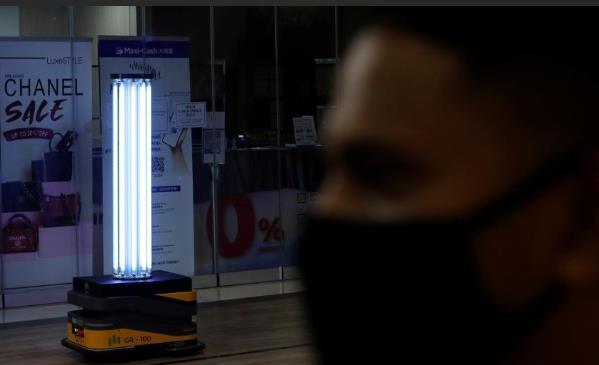 消毒新帮手 新加坡一家商场启用“紫外线机器人”