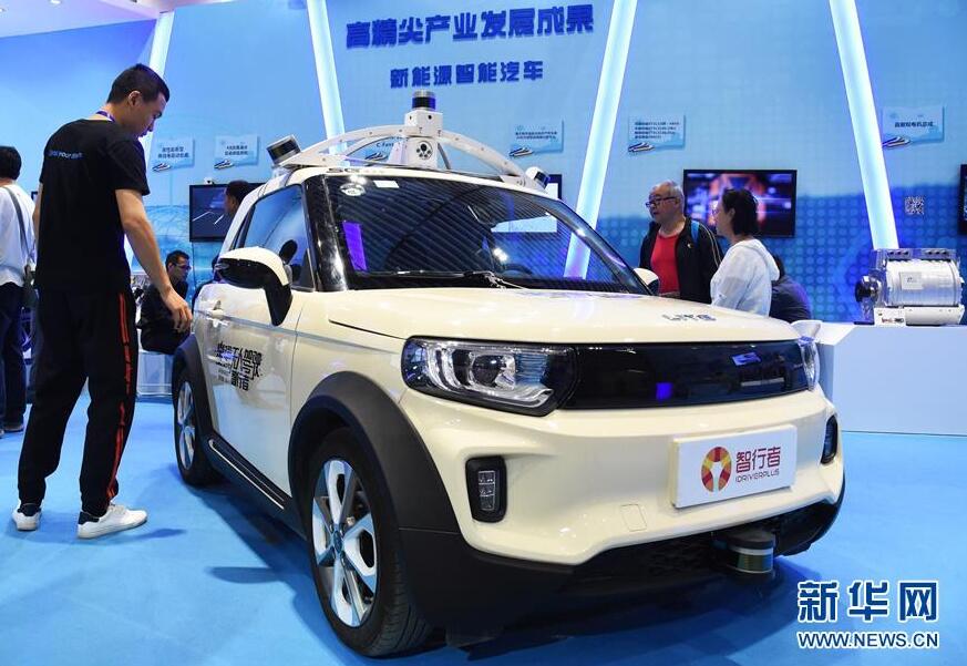 在2019年全国科技活动周暨北京科技周主场,观众参观L4级别无人驾驶电动车(5月21日摄)。 新华社发(任超摄)
