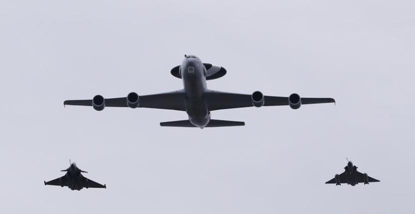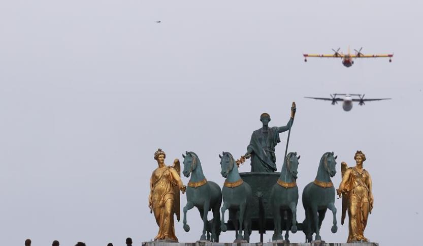 7月14日,法国空军飞机参加在法国巴黎举行的国庆阅兵式。 新华社记者 高静 摄