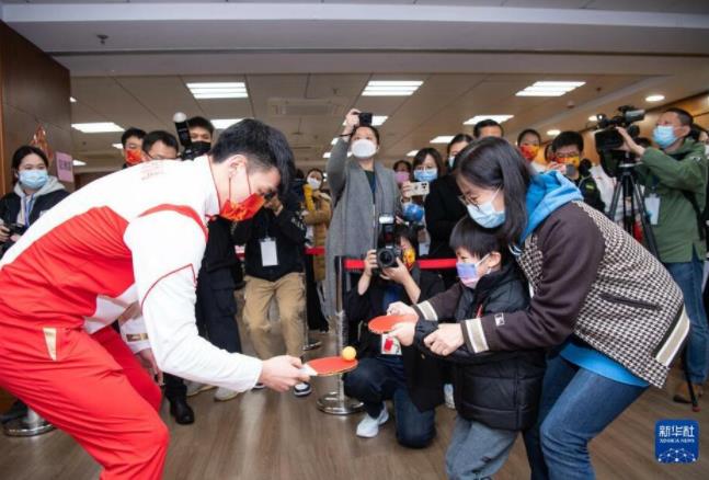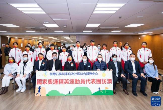 当日,内地奥运健儿代表团成员来到澳门妇联乐满家庭服务中心、澳门街坊联合总会石排湾家庭及社区综合服务中心等地,与社区居民交流互动。新华社记者 张金加 摄