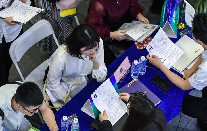 4月14日,在第十七届中国国际人才交流大会设置的招聘会上,求职者与用人单位工作人员交流。当日,第十七届中国国际人才交流大会在深圳启幕,来自50多个国家和地区的4000多家专业机构和组织、4万余名海内外政府代表、专家学者、高端人才应邀参展参会。 新华社记者 毛思倩 摄
