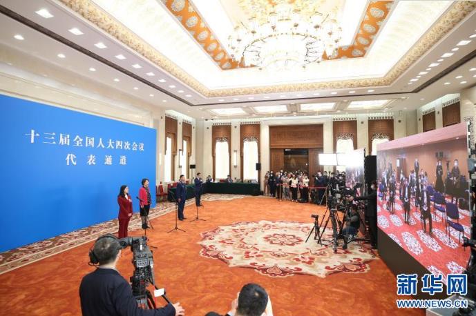 3月5日,第十三届全国人民代表大会第四次会议举行首场“代表通道”采访活动。这是全国人大代表通过网络视频方式接受采访。新华社记者 金立旺 摄