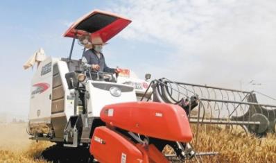 在曹新庄试验农场上合小麦育种创新基地,农机手正在抢收小麦育种材料。 陕西日报记者 仵永杰 摄