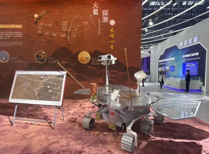 展览现场,深空探测实验室(天都实验室)展出的“祝融号”火星车模型。新华社记者吴慧珺 摄