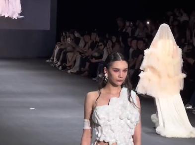 6月25日晚,香港理工大学时装及纺织学院在香港会议展览中心举办“理大时装展2025”,在舞台上展示由“服装及纺织(荣誉)文学士组合课程”应届毕业生创作的时装作品,涵盖休闲服装、晚装、内衣及运动服饰,以创意诠释当代时尚新趋势。