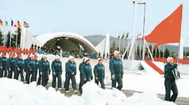 1980年第13届冬奥会,中国体育代表团正式亮相冬奥竞技赛场。(图源:新华社)