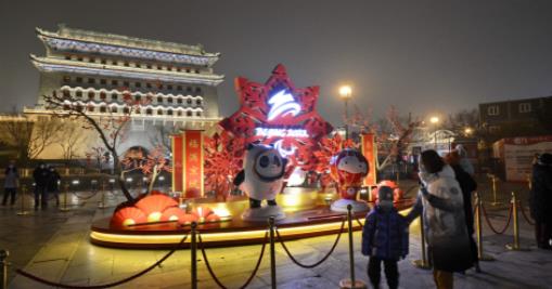 春节前夕,市民在北京前门大街观赏春节和冬奥主题景观灯。新华社记者李欣摄
