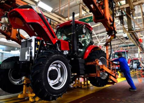 2月15日,在山东五征集团山拖农业装备有限公司,工人在生产线上装配农用拖拉机。新华社记者 郭绪雷 摄