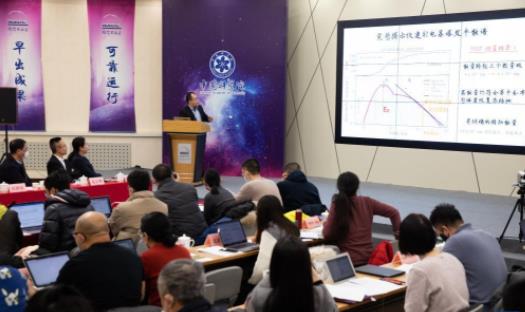 1月5日,在中科院国家天文台举行的新闻发布会上,国家天文台王培在介绍FAST在快速射电暴领域的重大成果。新华社记者 金立旺 摄