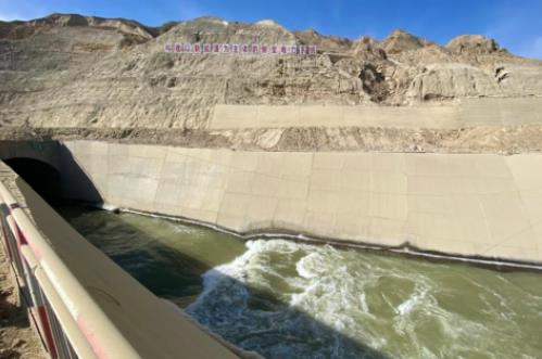 位于青海省海南藏族自治州境内的羊曲水电站部分导流明渠(1月26日摄)。新华社记者 王金金 摄