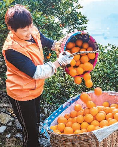 2月26日,湖北省宜昌市秭归县归州镇万古寺村,村民在田间转运红肉脐橙。郑家裕摄(人民视觉)