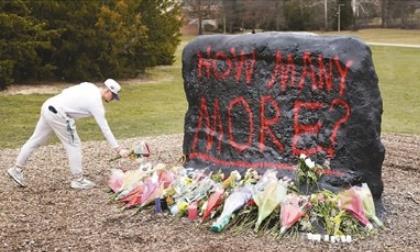 2月14日,在美国密歇根州立大学校园内,人们悼念枪击事件遇难者。新华社/美联