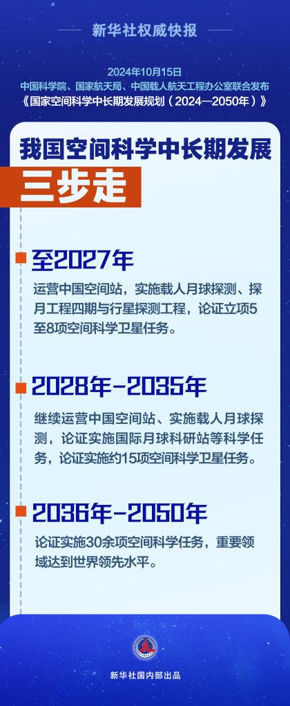 中国科学院、国家航天局、中国载人航天工程办公室10月15日联合发布《国家空间科学中长期发展规划(2024—2050年)》。