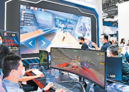 10月13日,第三届数字中国建设成果展览会现场,观众体验电子竞技。陈彬 摄(人民视觉)