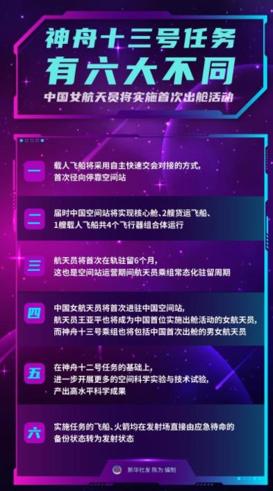 神舟十三号任务有六大不同 中国女航天员将实施首次出舱活动