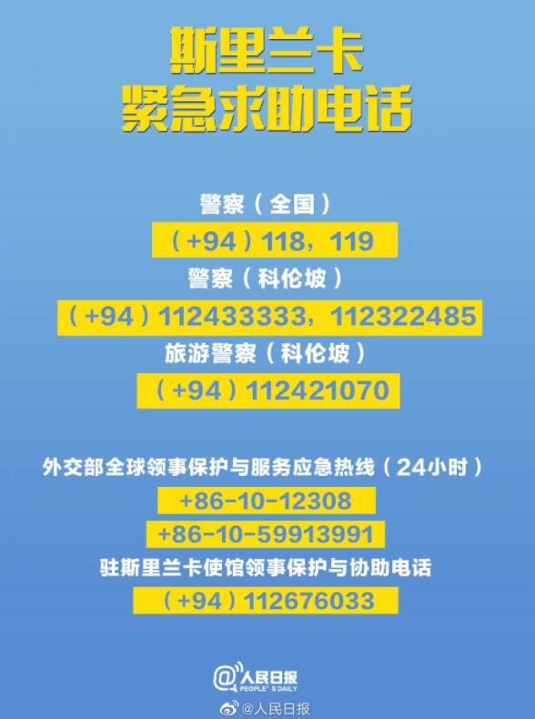驻斯里兰卡使馆领事保护与协助电话:(+94)112676033