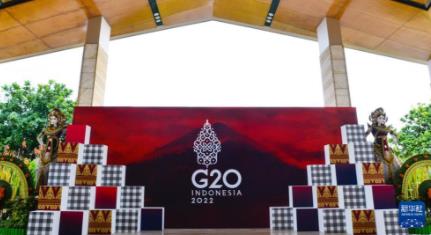 这是2022年11月11日在印度尼西亚巴厘岛拍摄的峰会一处会场外的峰会标识和装饰。新华社记者 徐钦 摄