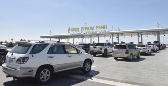 车辆在柬埔寨首都金边的金港高速公路入口处排队(2022年11月7日摄)。新华社记者 吴长伟 摄