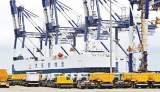 7月30日,山东烟台港,大批出口工程机械在集结等待装船。唐 克摄(人民图片)