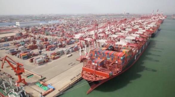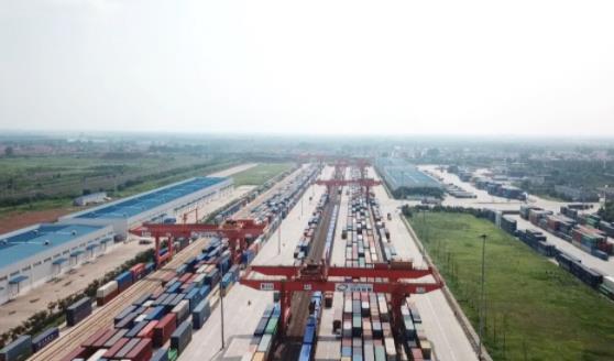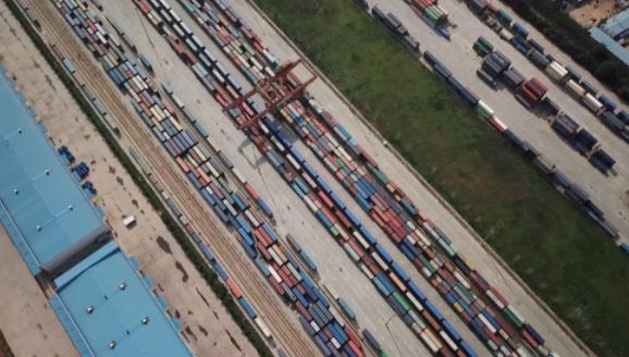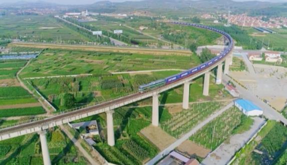 从空中俯瞰,一列列货运班列正有序从距离青岛港不远的上合示范区青岛多式联运中心启程,运输时间比传统海运节省一半。