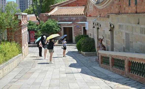 7月29日,游客在福建泉州晋江的“网红景点”五店市传统街区游览。新华社