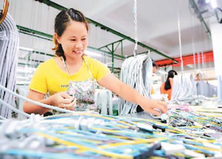 江西省吉安市峡江县认真落实减税降费、援企稳岗、纾困解难等政策措施,集中力量助推企业复工达标、复产达效。图为工人在吉安市峡江县坤诚电器有限公司生产电源线。陈福平摄(人民视觉)