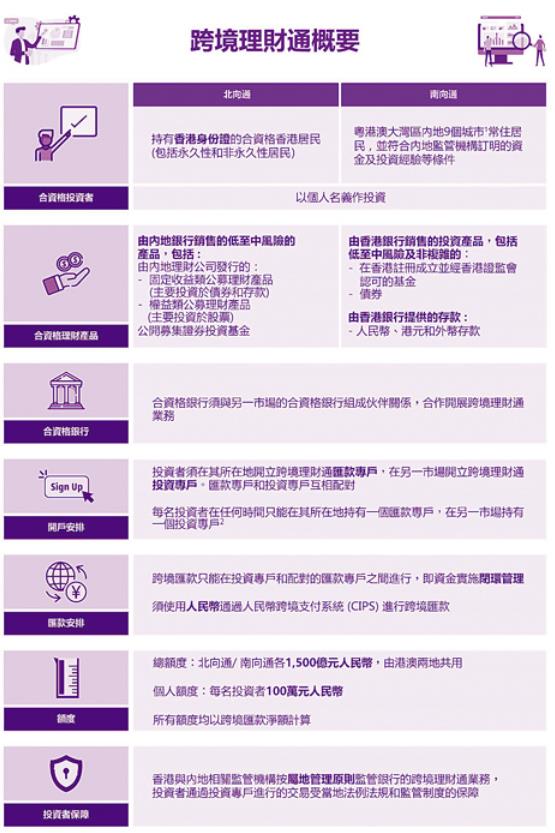 图为香港金管局制作的“跨境理财通”概要。(香港金管局供图)
