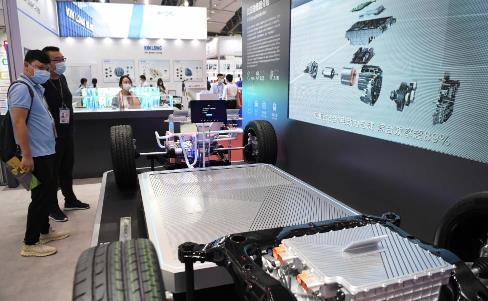 这是10月15日在第130届广交会上拍摄的比亚迪的刀片电池展台。新华社记者 邓华 摄