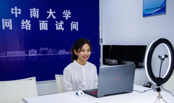 4月14日,在湖南长沙中南大学就业指导中心,学生通过网络进行求职面试。新华社记者 陈思汗 摄