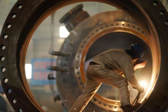 4月14日,在哈电集团哈尔滨锅炉厂有限责任公司车间,工人进行生产作业。新华社记者 王建威 摄
