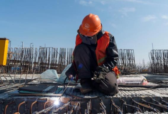 4月3日,在哈尔滨市道外区,工人在中铁一局北门街高架工程施工现场作业。新华社记者 谢剑飞 摄