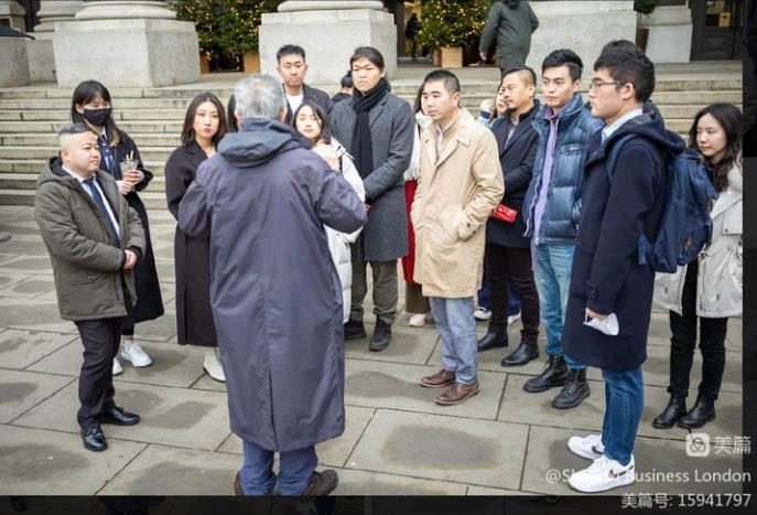 被赞誉为英国最好导游之一的Tim用洪亮的声音自豪的向大家介绍道,英格兰银行周边区域聚集了全球著名的银行和金融机构其中就包括一街之隔的中国银行以及附近的中国工商银行,他们是最早参与人民币海外交易的先行机构,因为伦敦是最早发起人民币海外交易的金融中心,它的外汇交易额占据全球一半以上市场绝对的优势,比纽约和东京加起来还要多。