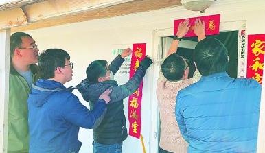国家电网公司凡城项目现场员工过年贴春联。冯源供图