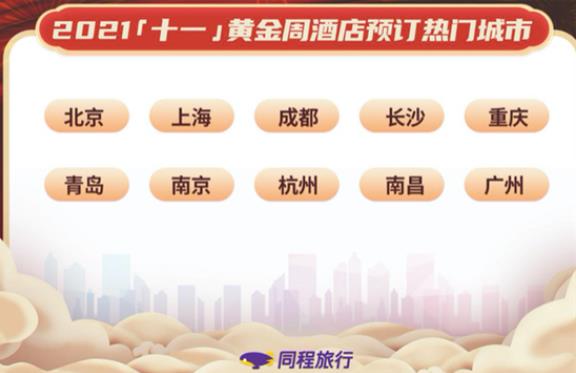 《报告》基于同程旅行住宿大数据的预测显示,国庆假期过夜游客(有过夜住宿需求的游客)主要集中在北京、上海、成都、长沙、重庆、青岛、南京、杭州、南昌、广州等城市,这些城市也将是“十一”期间的热门出游目的地。