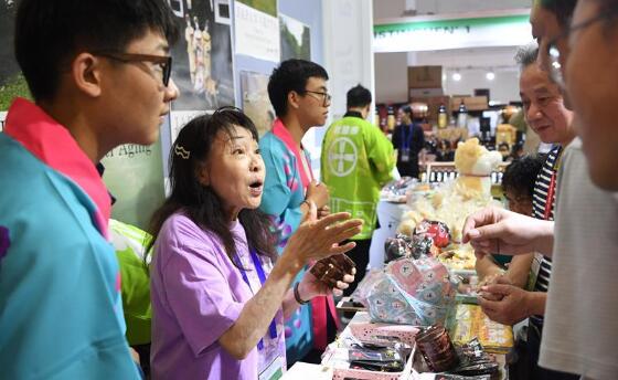 7月4日,一位日本客商(左二)在“兰洽会”上向参会嘉宾推介商品。 新华社记者 陈斌 摄